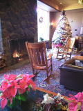 ロビーには暖炉とツリーがあり、雰囲気がある素敵なロッジ風ホテル。